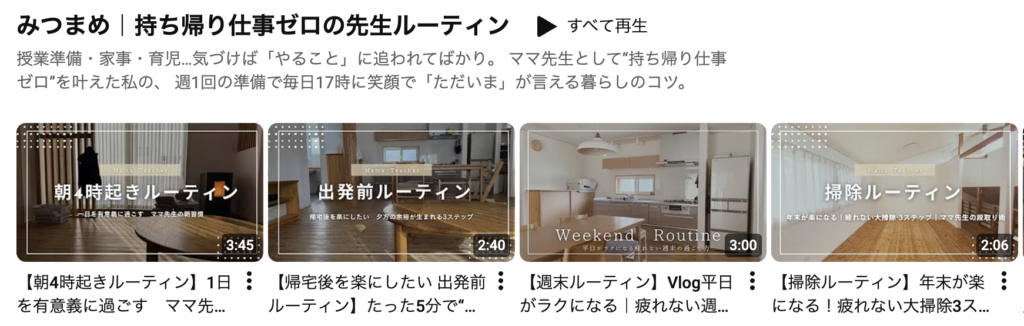 YouTube(一日一時間家事チャンネル|みつまめ|持ち帰り仕事ゼロの先生ルーティン)