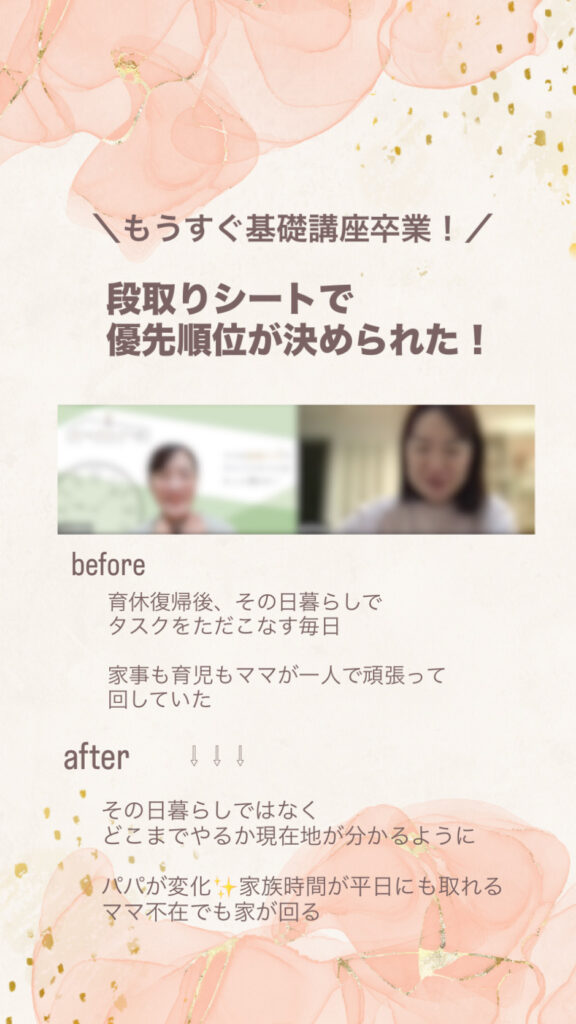 その結果、段取り力がつき、やるべきことが自然とルーティン化されていきました。